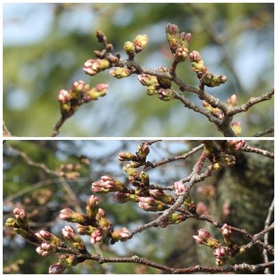 3月27日、自動車学校前の櫻木は、蕾が少し緩んで来たようです。