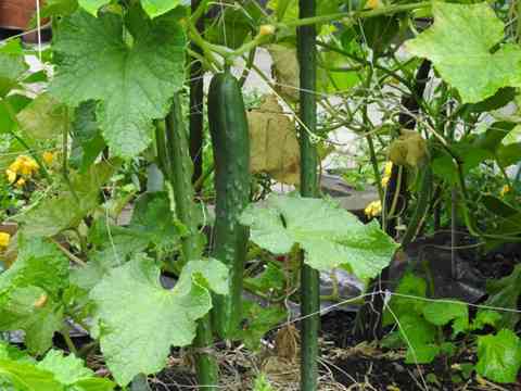 6月30日、小さな畑に植えて有るキュウリの木に、