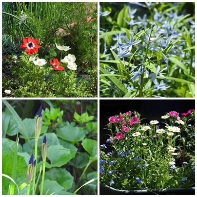 4月28日、アネモネ、丁子草、アヤメ、ナデシコと