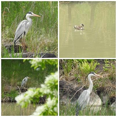 アオサギさんは岸辺で頭の天辺から髪の毛を垂ら