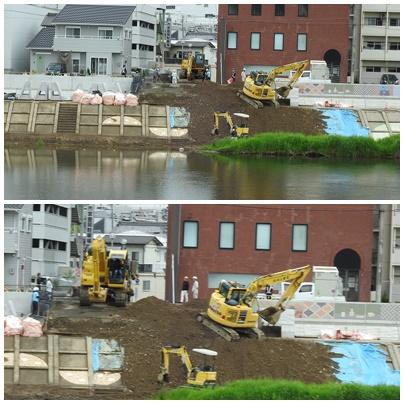 4月30日、土岐川右岸底部嵩上げ工事が、いよいよ