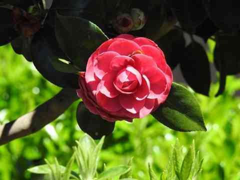 八重の椿でしょうか、花が大きく可愛らしいです。