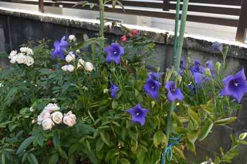 庭の桔梗や四季咲きの薔薇が、奇麗に咲いていますね。