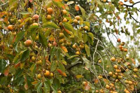 虎渓公園の近くの林に、たわわに色ずいていた柿(小粒なたぶん渋柿❓)がありました。