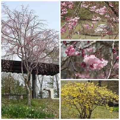 4月6日、公園の枝垂れ桜は3分咲きになりました。