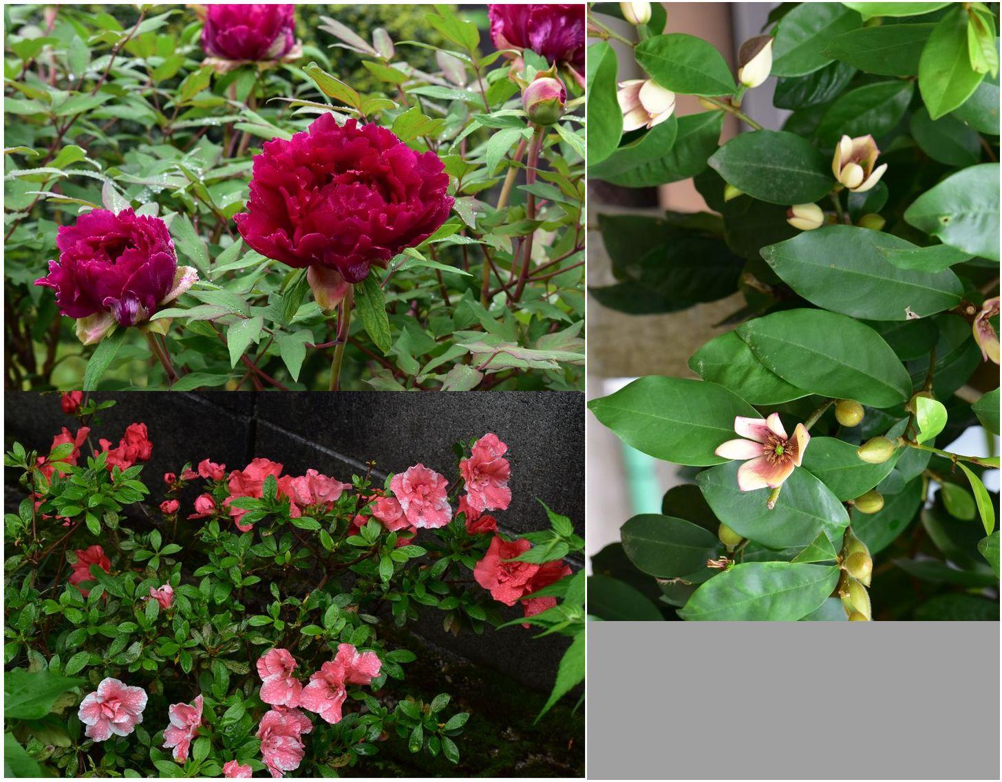 左下・・・アザレア(ツツジ科)日蔭に植えてありますが、今年は、花付きが良いようです。