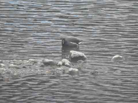 雄は水の中に頭を突っ込んで、餌を探しなが