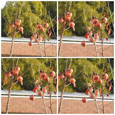 嘴で柿を食べていました。