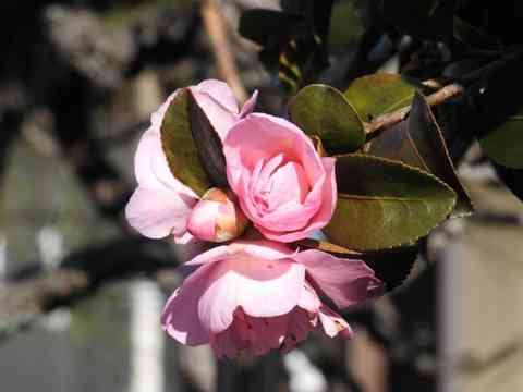 庭のピンクの山茶花が開花した花を親として、