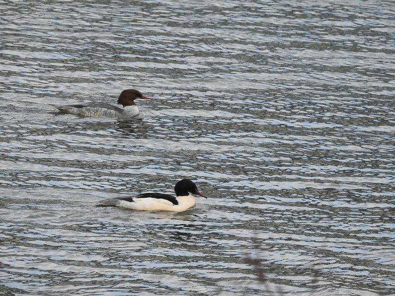 土岐川でカイツブリと一緒に、カワアイサの番が