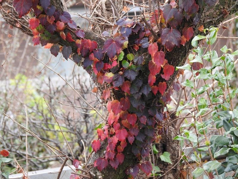 柿の木に纏いついた蔦の葉が紅葉して奇麗です。