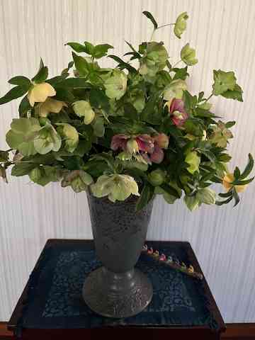 今、水曜午前のパソコン教室でsimaさんからお庭に咲いていたクリスマスローズを花瓶に差した写真を見せてもらいました。素敵だったので、おしゃべり広場で紹介しますね。