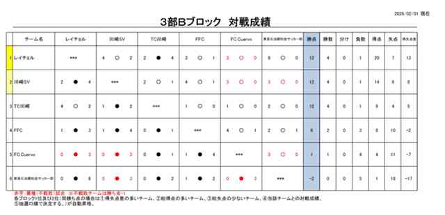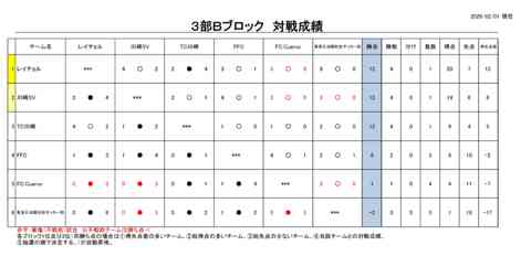 2025年度細岡杯市民サッカー大会(リーグ戦)3部Bブロック最終順位について