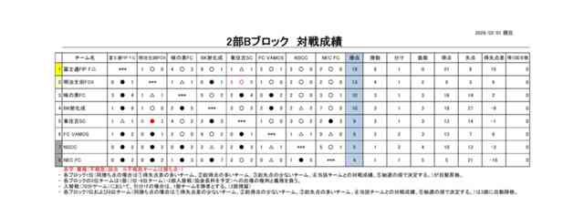 2025年度細岡杯市民サッカー大会(リーグ戦) 2部Bブロック最終順位について