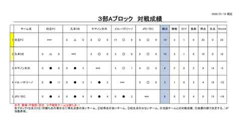 2022年度細岡杯市民サッカー大会(リーグ戦) 3部Aブロック成績