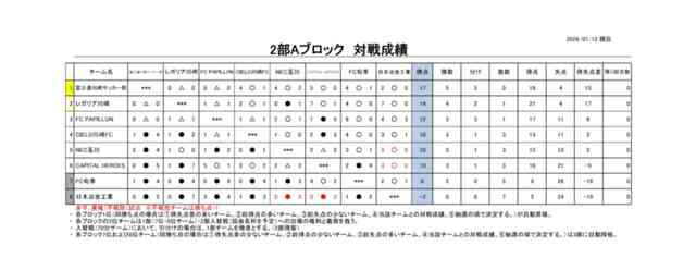 2025年度細岡杯市民サッカー大会(リーグ戦) 2部Aブロック最終順位について