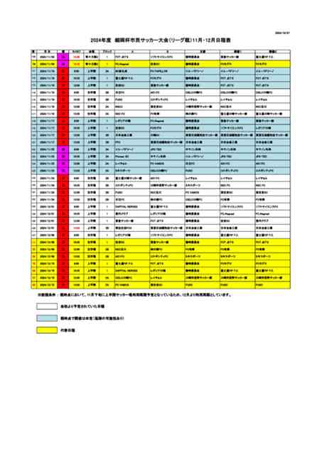 一昨日(10/27)に各チーム宛に11月・12月の日程表をお送りしました。