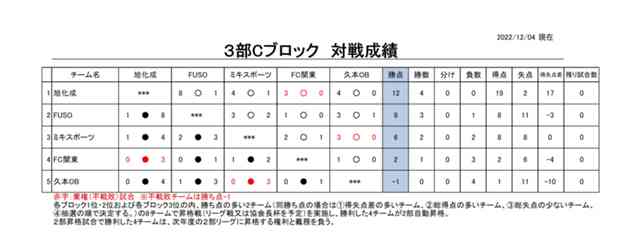 2022年度細岡杯市民サッカー大会(リーグ戦) 3部Cブロック成績