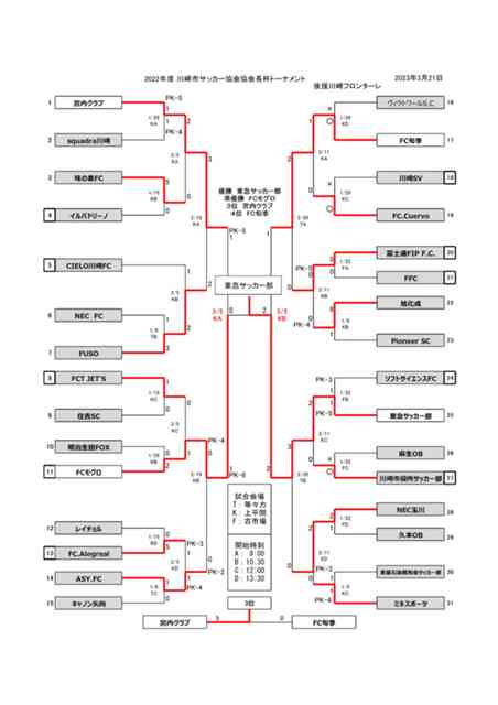 以上をもちまして、2022年度川崎市サッカー協会 協会長杯トーナメントは