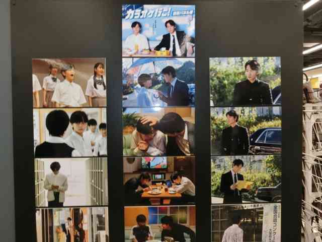 映画『カラオケ行こ!』の劇中使用衣装等展示会第4弾は、映画のスチル写真(映画の宣伝や広報の素材として用いられる写真のパネル)です。スチル写真は、専門のスタッフがシーンの撮影終了時または同時並行で撮影したものでしょう。きれいな画像は、ネットで視聴できますが、これだけ集合すると圧巻です。