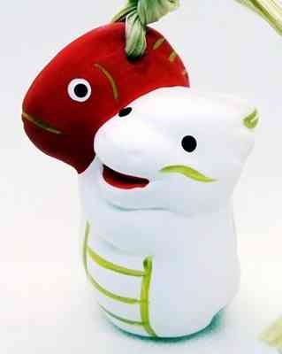 令和改元記念・柏餅を食べる鹿や猫を乗せた金太郎 ⇒ 鯛担ぎ辰