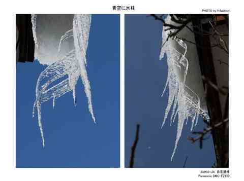 北陸から関西北部地域は豪雪が続いていますね。湖北地方の雪模様は眺める側からは美しい「雪景色」ですが、住んでいる方々は大変な思いをしているのではと推察します。札幌もドカ雪と突然の晴れと、めまぐるしく天候が変わります。寒さは厳しく、郊外では10℃を下まわる状況です。その結果が「氷柱」です。今年も屋根の縁にできました。