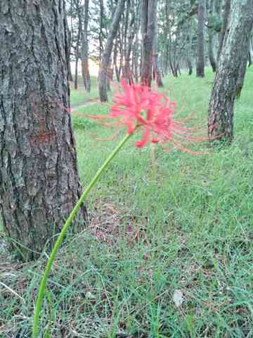 風に揺れる(?)彼岸花。季節ですね。TVでも新聞でも佐賀のあぜ道の彼岸花はよく紹介されますね。防風林の松林に咲くお花も素敵です。北国の尾花はもうかなりくたびれてきましたが、コンビニをはしごする散歩道で見つけました。