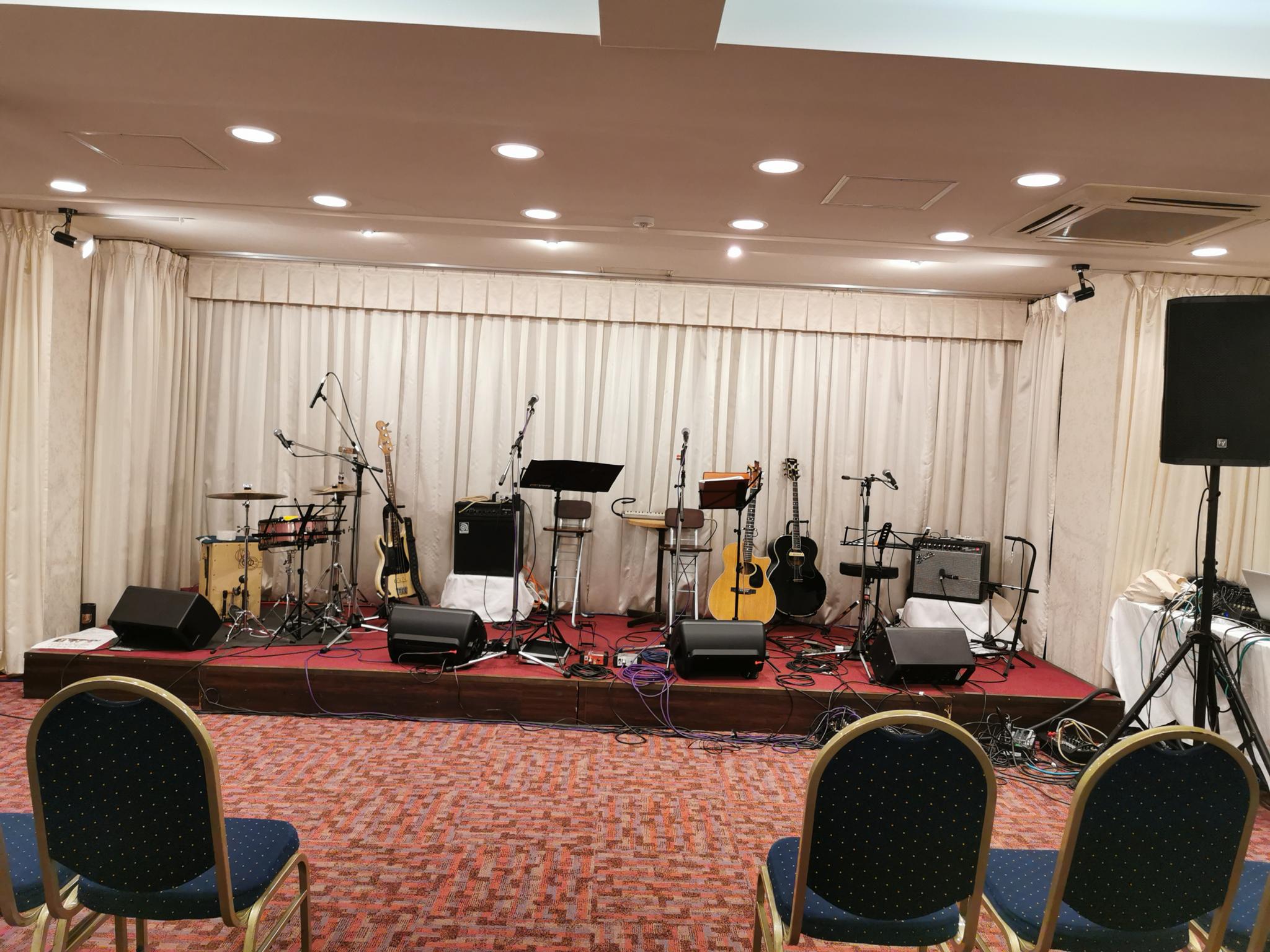それで、リハの時にドラム担当のイカちゃんがPA的にドラムの音を確かめたいとかで、誰かドラムたたける人と言うことで、我らがFASのシゲさんに白羽の矢が立ったのでした!