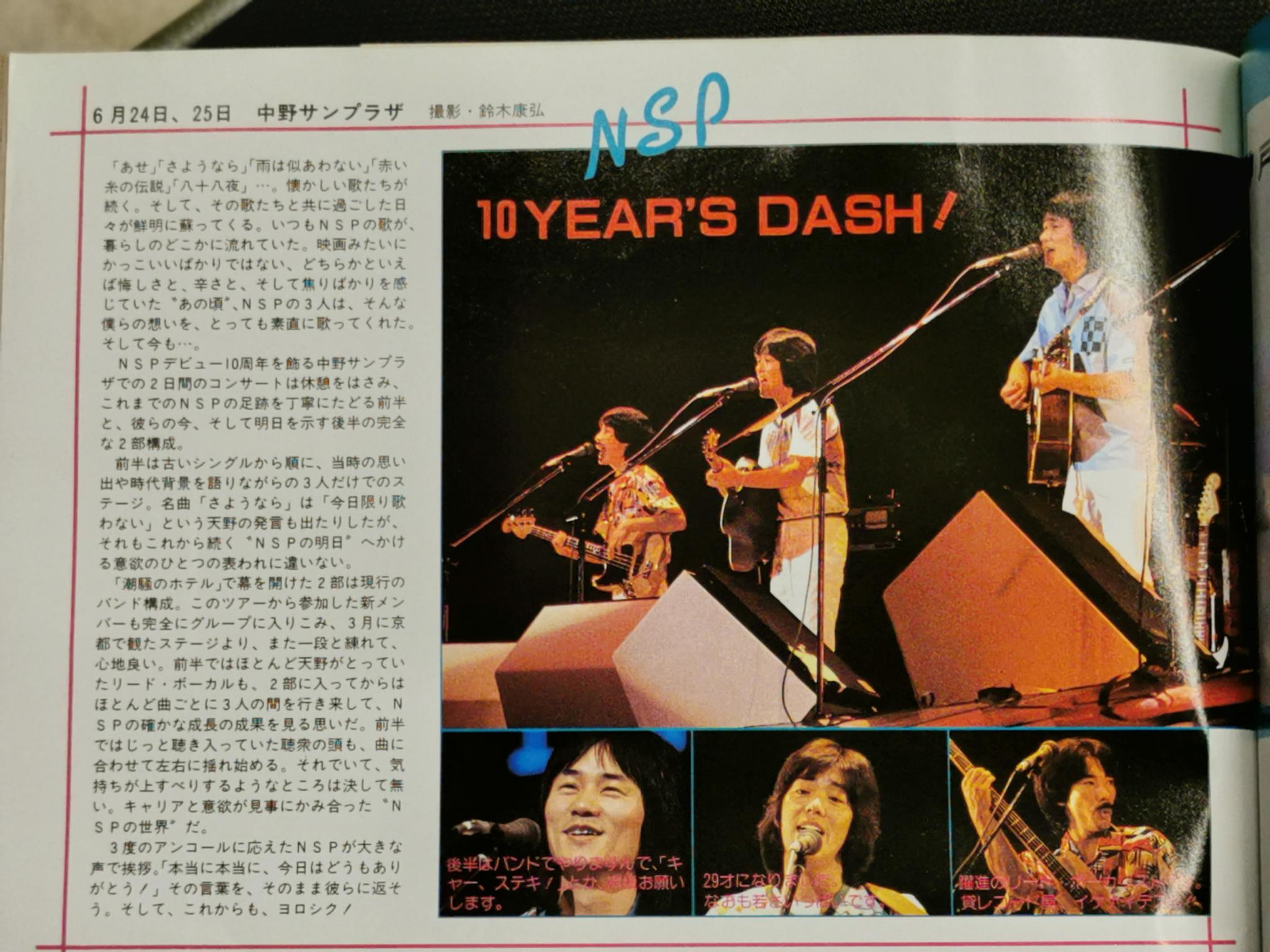 水曜日に井上ともやすさんのライブがあって、会場に展示した古い新譜ジャーナルにNSPの10周年コンサートの記事が載っていました。