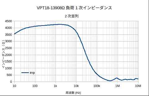 原因は、図3−2−2を見ればわかると思います。実際8Ω負荷でトランスの一次インピーダンスを測った図を掲載します。