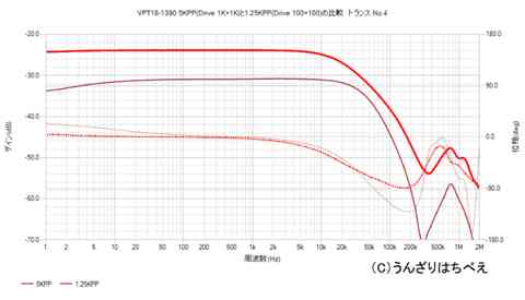 VPT18-1390を4個測りました。一次直列二次並列5KPP(drive1K+1K)、一次直列二次直列1.25KPP(100+100)