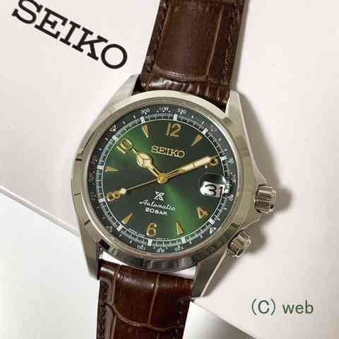 長年愛用している腕時計のレザーベㇽトが寿命が来てしまいました、 そこでAmazonで物色です、奮発してイタリアン・レザーに交換しました。 昨今、スマホがあれば時計なんて、どうしても必要と思っていませんでした、 ところが、手術した病院のベットでは、腕時計は必需品であります、 どうせならと、チョット高級品の時計をと思い購入いたしました、 が、高級品といっても、ロレックス等の身分不相応のクラスではありません、 自分好みの国産品で、SEIKOの機械式(ベルト革)を選びました。 この機械式腕時計で感じた事は、クオーツでは体験出来ない使用感が好みに合うのです、、 まず、面倒な事、放置して置くと止まります、絶えず動力の補給が必要です、 動力源はバネの復元力のみであり、電池や半導体は存在いたしません、 あたかも蒸気機関車の如く、動力の伝達は精密な歯車やバネの機械伝達であります、 秒針の動きは小刻みに「チッチッチッ」と、小気味よい軽快感があります。 Amazonで交換ベルトを探していたところ、山岳用腕時計「アルピニスト」に出会いました、 緑の文字盤が森林の自然に溶け込みます、一目惚れであります、 胸騒ぎが・・・、真空管同様、収集病が発病かもしれません。
