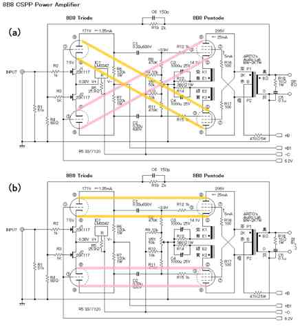 私が製作したCSPPアンプで、菊地さんとの回路の違いは固定バイアスであるか、