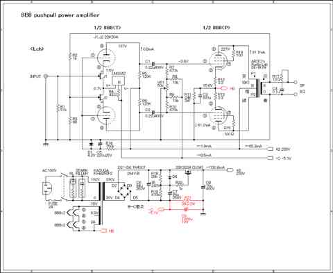 出力管カソードからHB Lch 0.3mV~0.5mV Rch 0.3mV~0.4mV