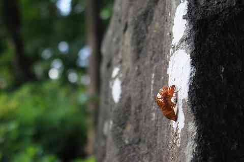 それを体現するかのように公園の庭園の岩にセミの抜け殻が貼り付いていました。