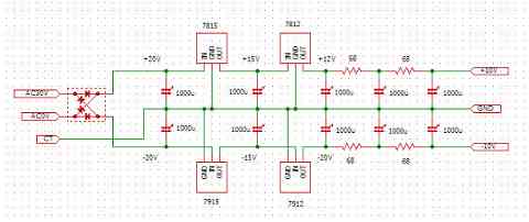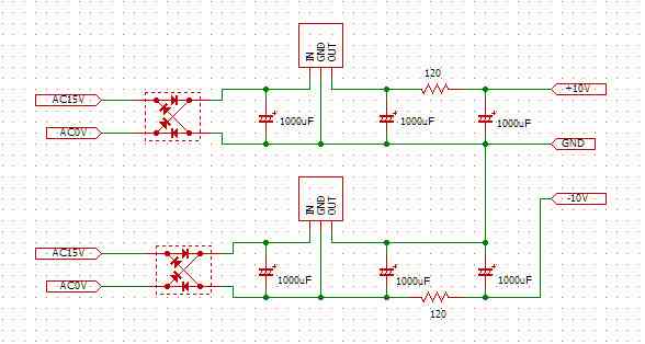 3端子レギレータ自身も半導体のノイズを出しますので、3端子レギレータを2段重ねの後に半導体のノイズを除去する