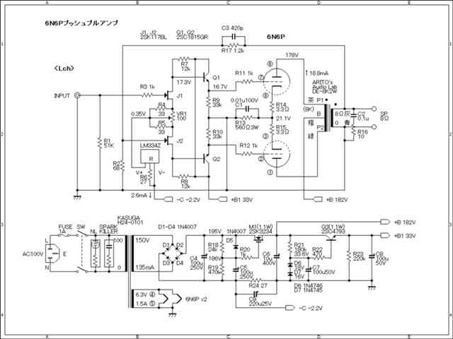 >只今製作中のアンプは正にハイブリッドです。(回路図案参照)