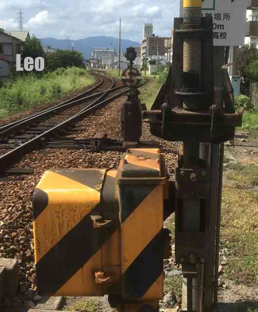 No.431ポール牧2022年12月8日 21:14 遮断機の後ろに写っているのはスプリングポイント(発条転轍器)という物です。