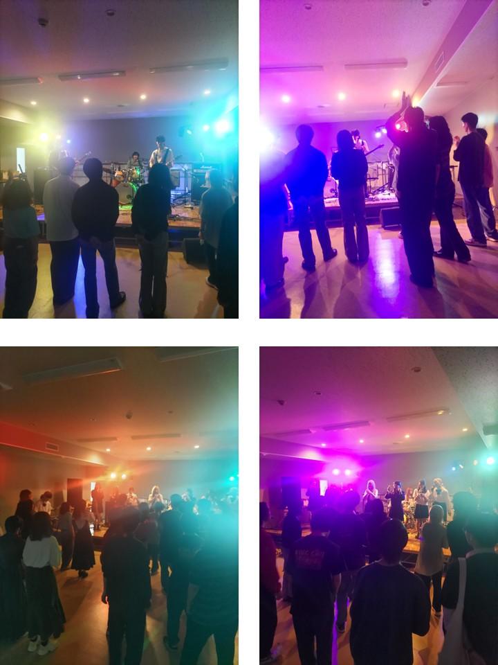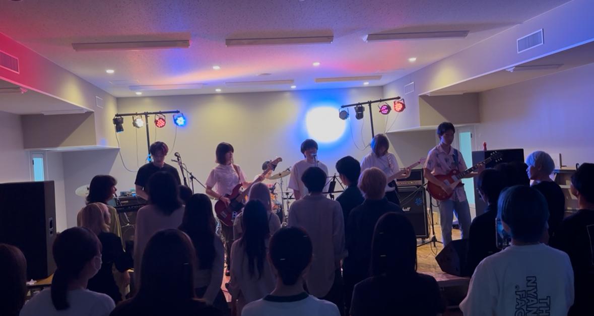 この度は、新入生たちを集めて2年生から4年生先輩のライヴを紹介する