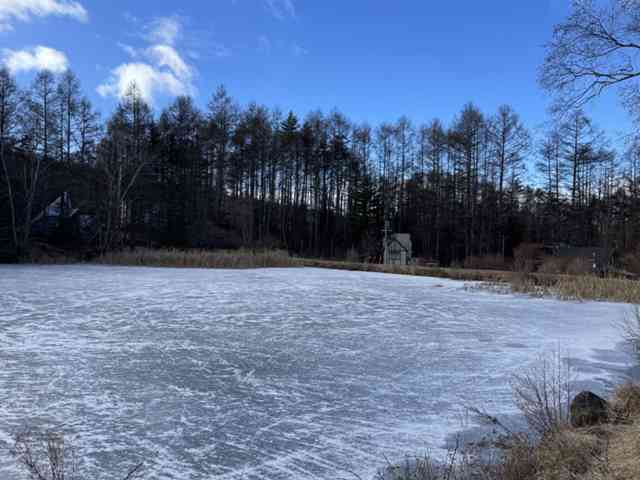 美濃戸池が全面結氷です。