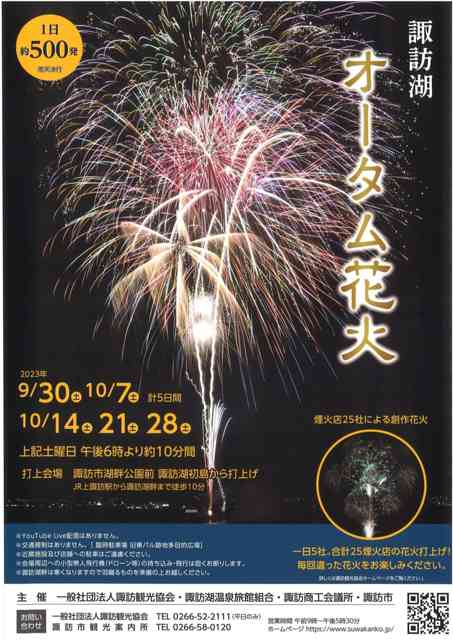 そうそう「諏訪湖オータム花火」というイベントも始まっています。