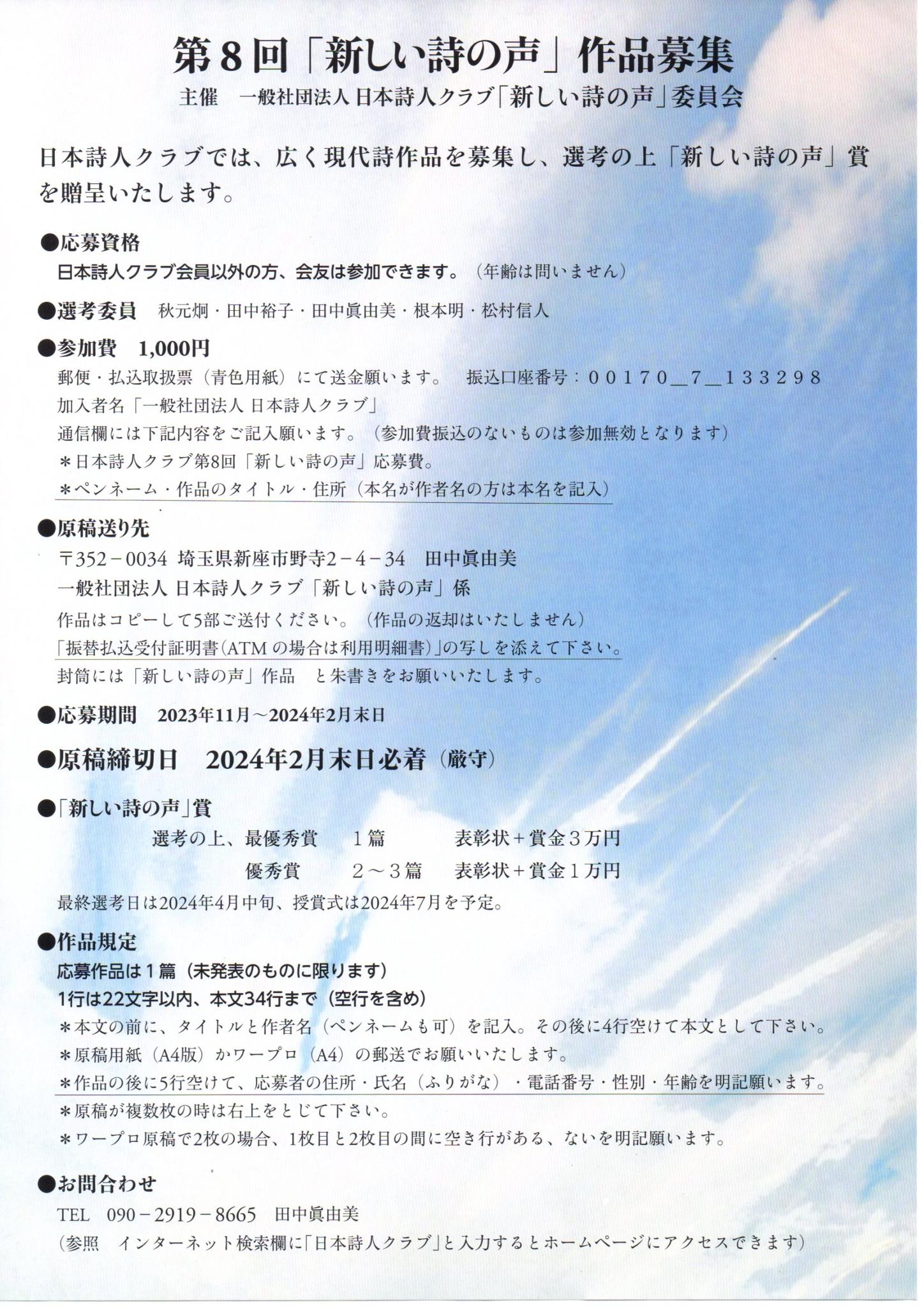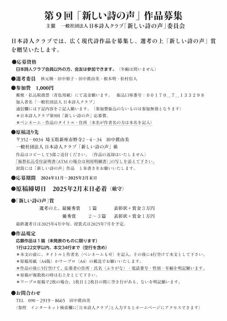 日本詩人クラブ「新しい詩の声」募集チラシ 島 秀生