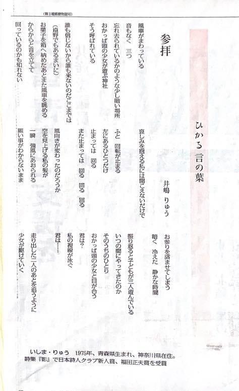 井嶋りゅうさんの詩「参拝」が掲載されております。