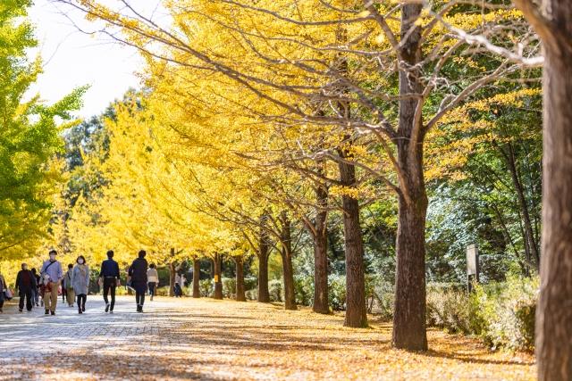 ※埼玉県秩父市にある「ミューズパーク」の銀杏並木