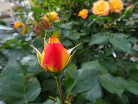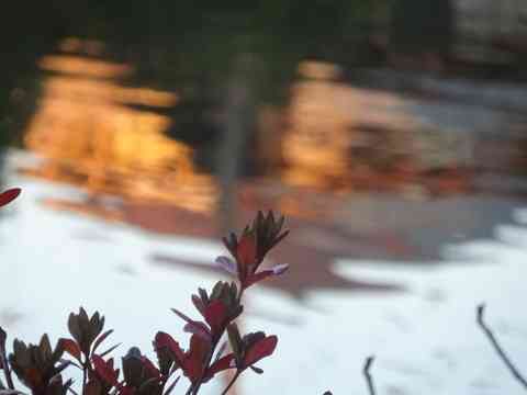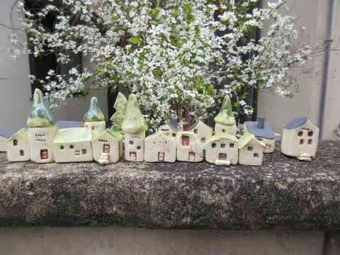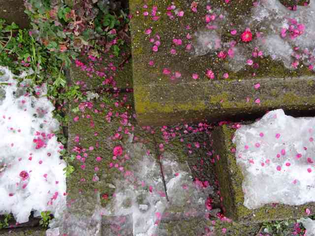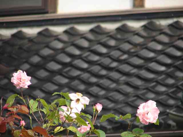 小米花小人の街の屋根に散る