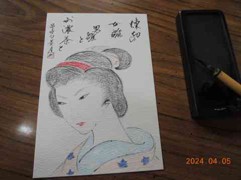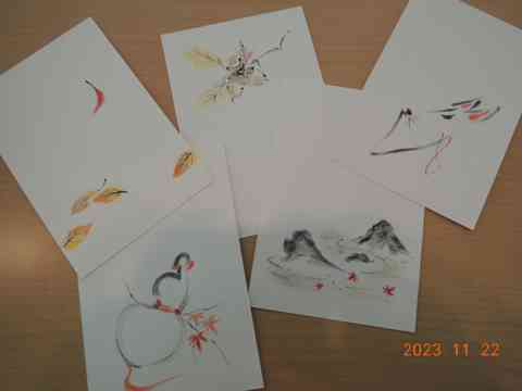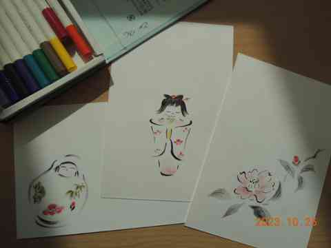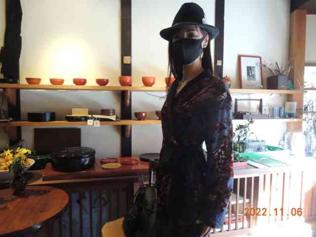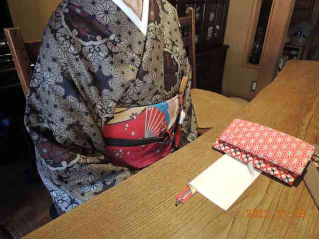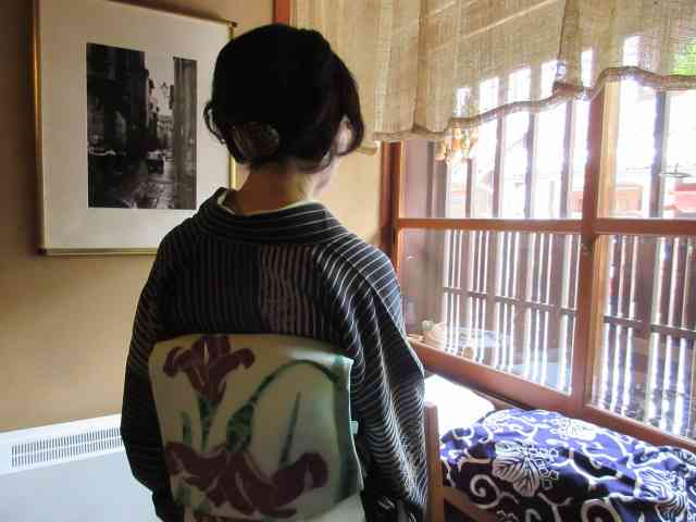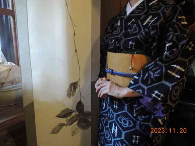 秋袷楚々と墨絵のお師匠さん