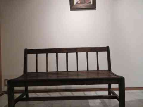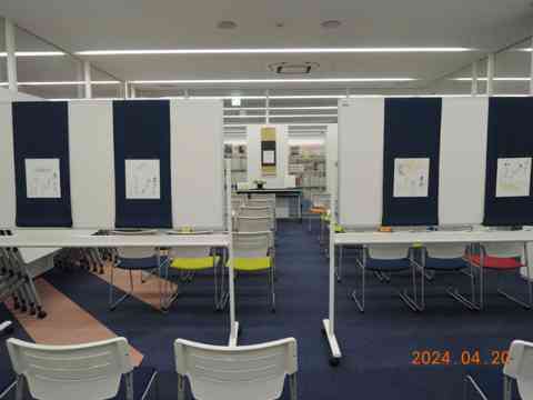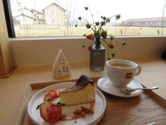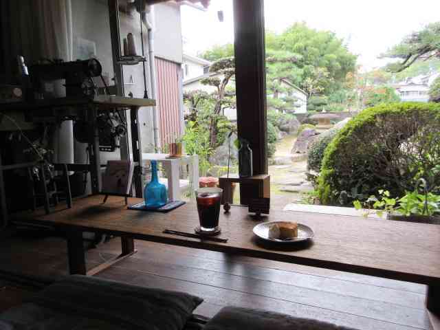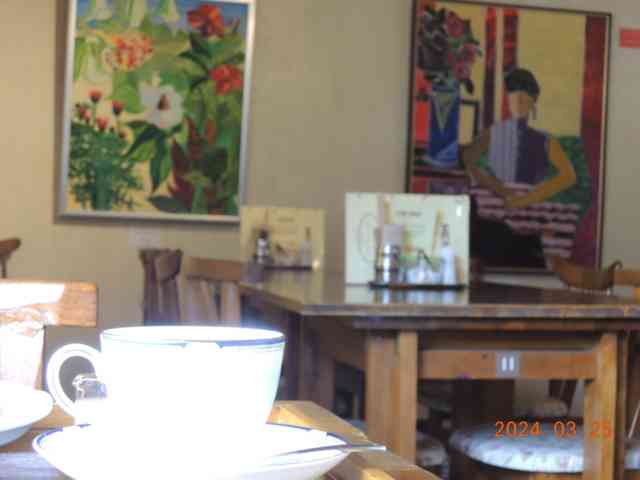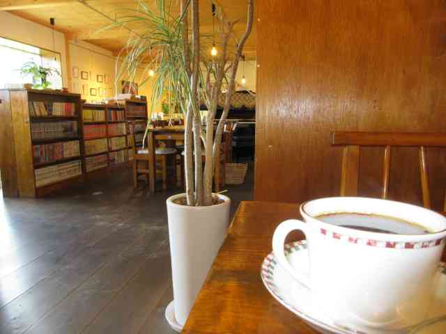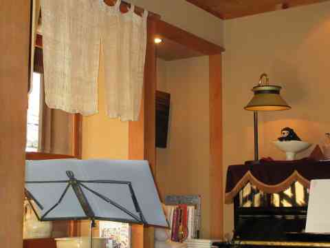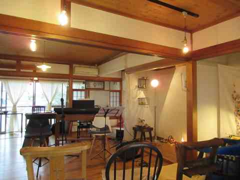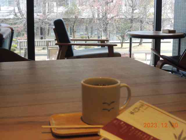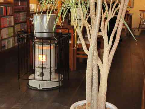 カフェ隅に学校机木の芽風