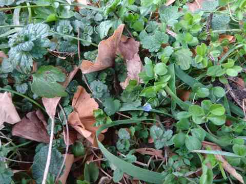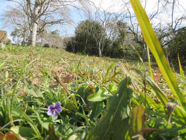 禅寺の脇に菜園花すみれ