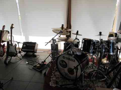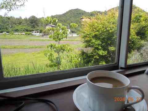 ゴーヤカーテンその奥のジャズ喫茶