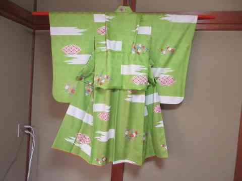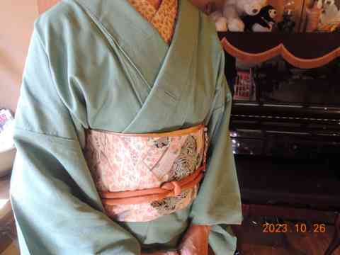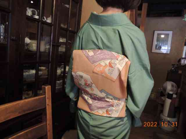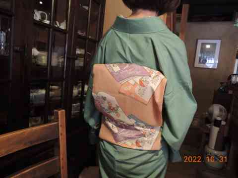 春装の萌黄の裾に御所車